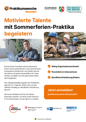 Weitere Informationen für Unternehmen unter praktikumswoche.de/warendorf/unternehmen.